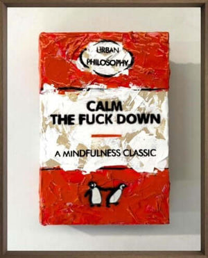 Urban Philosophy is a contemporary graphic art series built around bold statements and everyday observations. 'A Mindfulness Classic' pairs strong typography with layered texture and flat colour, creating a piece that is direct, readable, and full of character.