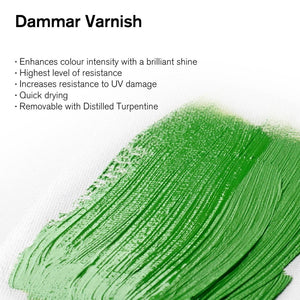 Winsor & Newton Dammar Varnish is a high-gloss finishing varnish designed to protect fully cured oil and alkyd paintings. It seals the microscopic pores in the paint surface, offering resistance to dirt and grease while enhancing colour vibrancy with a uniform sheen.