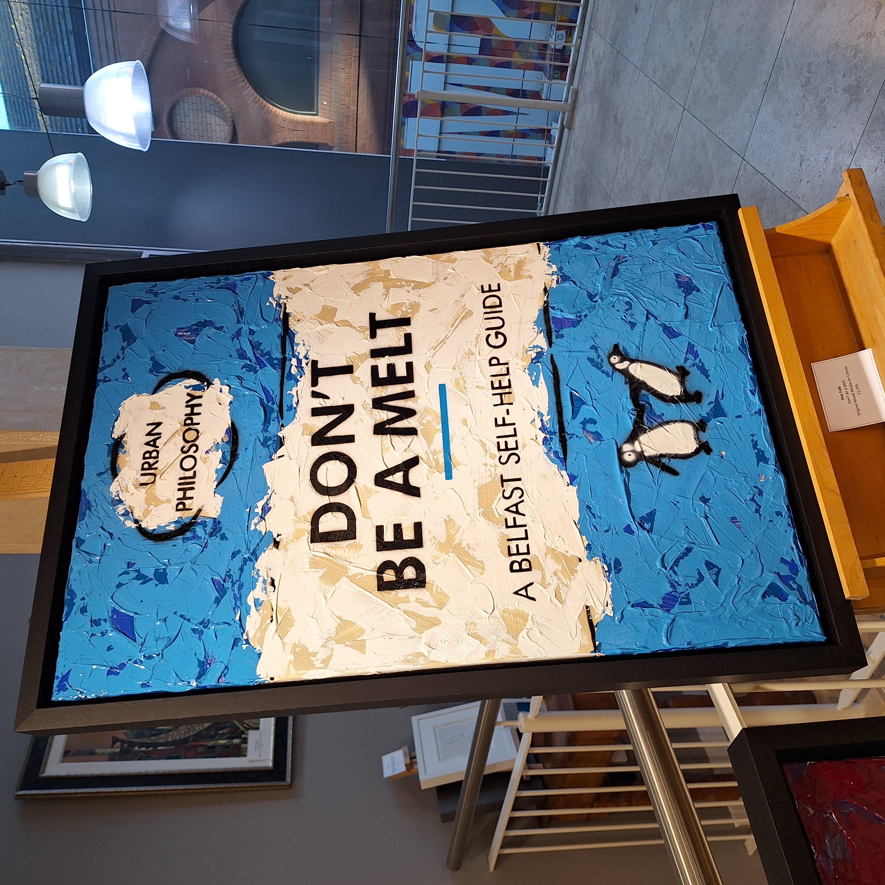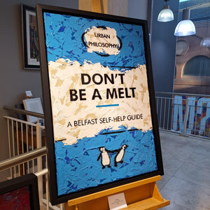 Urban Philosophy is a contemporary graphic art series built around bold statements and everyday observations. 'Don't be a melt' pairs strong typography with layered texture and flat colour, creating a piece that is direct, readable, and full of character.