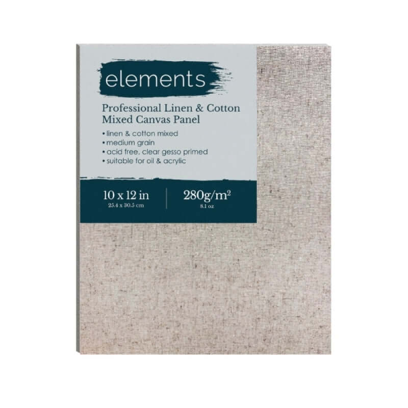Elements Professional Cotton/Linen Blend Canvas Board offers a premium painting surface ideal for artists seeking the strength of linen with the affordability of cotton.