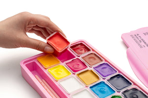 The HIMI Jelly Cup Gouache Set - 18 Colours (Pink Case) is a compact, resealable cup set designed for bold, opaque colour with minimal setup. Open the lid and paint - perfect for quick studies, sketchbooks and beginner-friendly gouache work.
