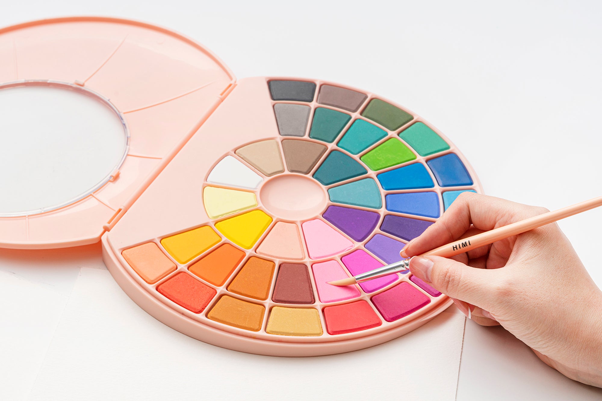 The HIMI Solid Watercolour Set - 24 Colours (Pink Case) is an easy-to-use travel-friendly palette with strong colour payoff and simple rewetting. Great for sketching on the go, quick washes, and learning watercolour fundamentals.