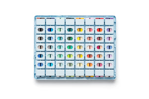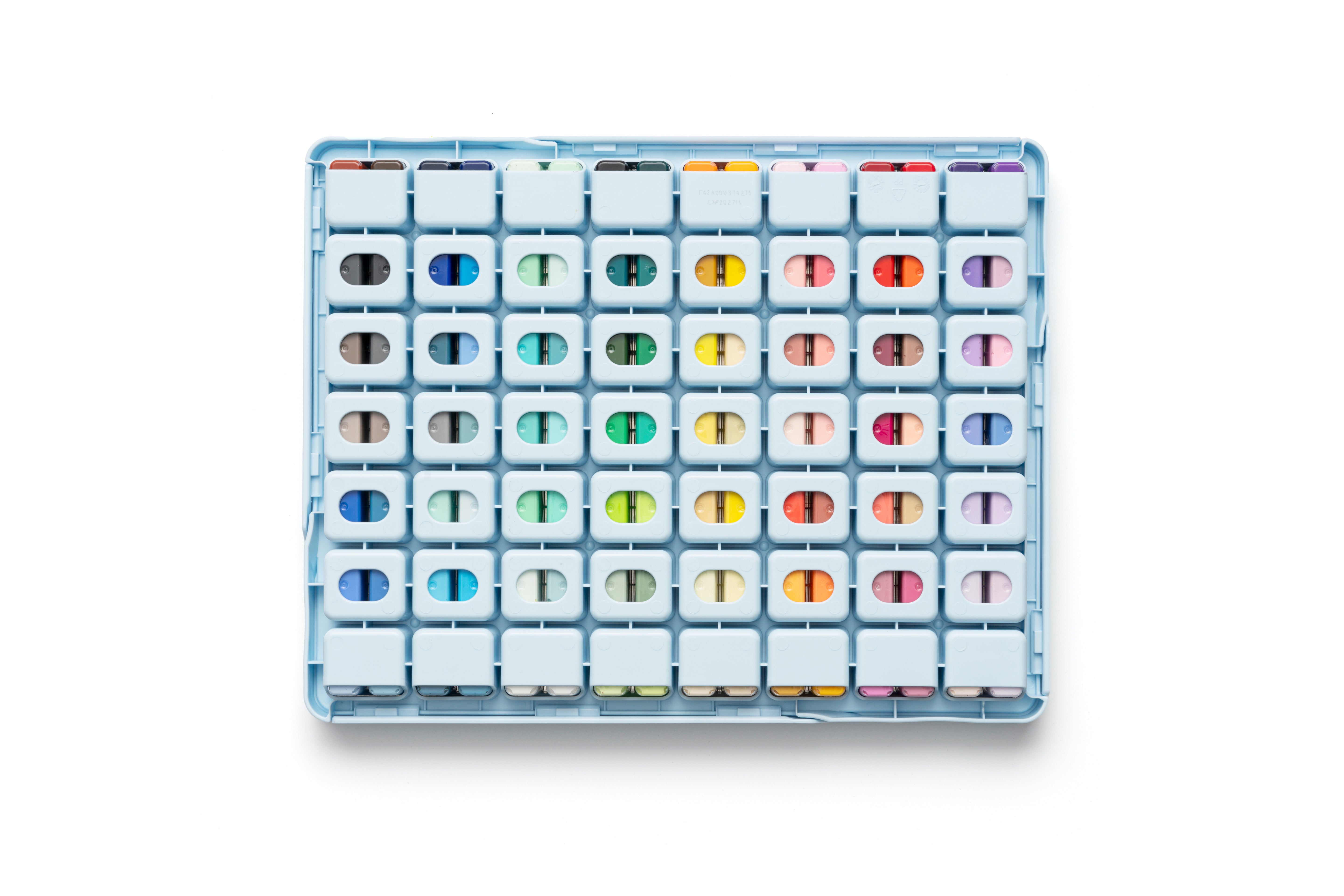 - 112 individual gouache shades arranged in twin cups