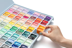 The HIMI Twin Cup Gouache Set - 112 Colours is the most expansive twin-cup palette in the range, offering an extensive colour spectrum in a compact, organised case. The twin-cup layout provides two shades per slot, giving you broad mixing flexibility without increasing storage size.