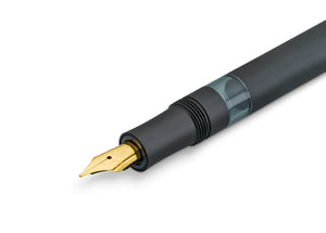 The Kaweco PISTON Sport - AL - Black has a matte black anodised aluminium body, which is durable and gives the pen a high-quality haptic. The perfect balance between the weight and diameter of the fountain pen ensures comfort during long periods of writing. The matte surface contrasts perfectly with the shiny golden elements including a golden integrated clip - which enhances the functionality with stylish elegance.