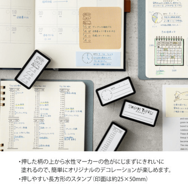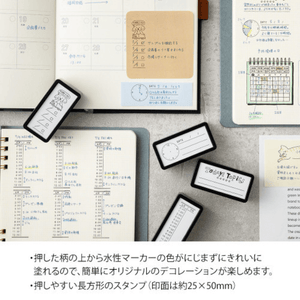 Paintable stamp Pre-inked Half Size allows you to enjoy decoration your daily record on notebook, or planner. Delicate patterns can be stamped beautifully without using a stamp stand. Since the ink is oil-based pigment, it does not bleed even when applied over the pattern with a water-based marker. The ink can be stamped approximately 1,000 times.
