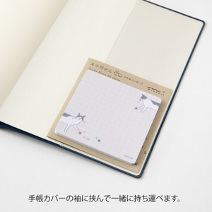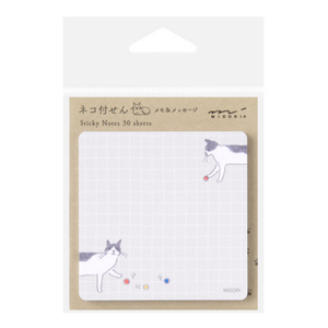 Sticky notes featuring a playful ball and cat design, offering plenty of writing space for memos and messages. The thin grid lines help keep your handwriting tidy, while the two-fold backing fits neatly into the sleeve of a diary, schedule planner, or notebook for easy portability.