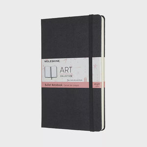 The Moleskine Art Large Bullet Notebook in Black is designed for bullet journaling, doodling, and creative planning.