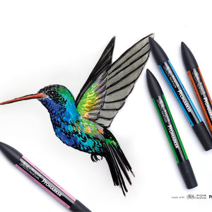 - Set contains 24 x Promarkers: Lemon, Pumpkin, Bright Orange, Red, Crimson, Hot Pink, Rose Pink, Orchid, Violet, Duck Egg, Cyan, True Blue, Midnight Blue, Turquoise, Soft Green, Moss, Grass, Green, Cocoa, Saffron, Putty, Cool Grey 2, Cool Grey 4, and Black