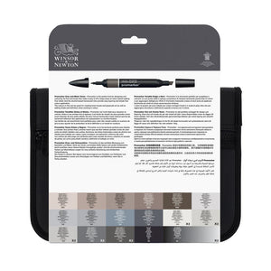 Winsor & Newton ProMarker Wallet – 24 Grey & Black Tones