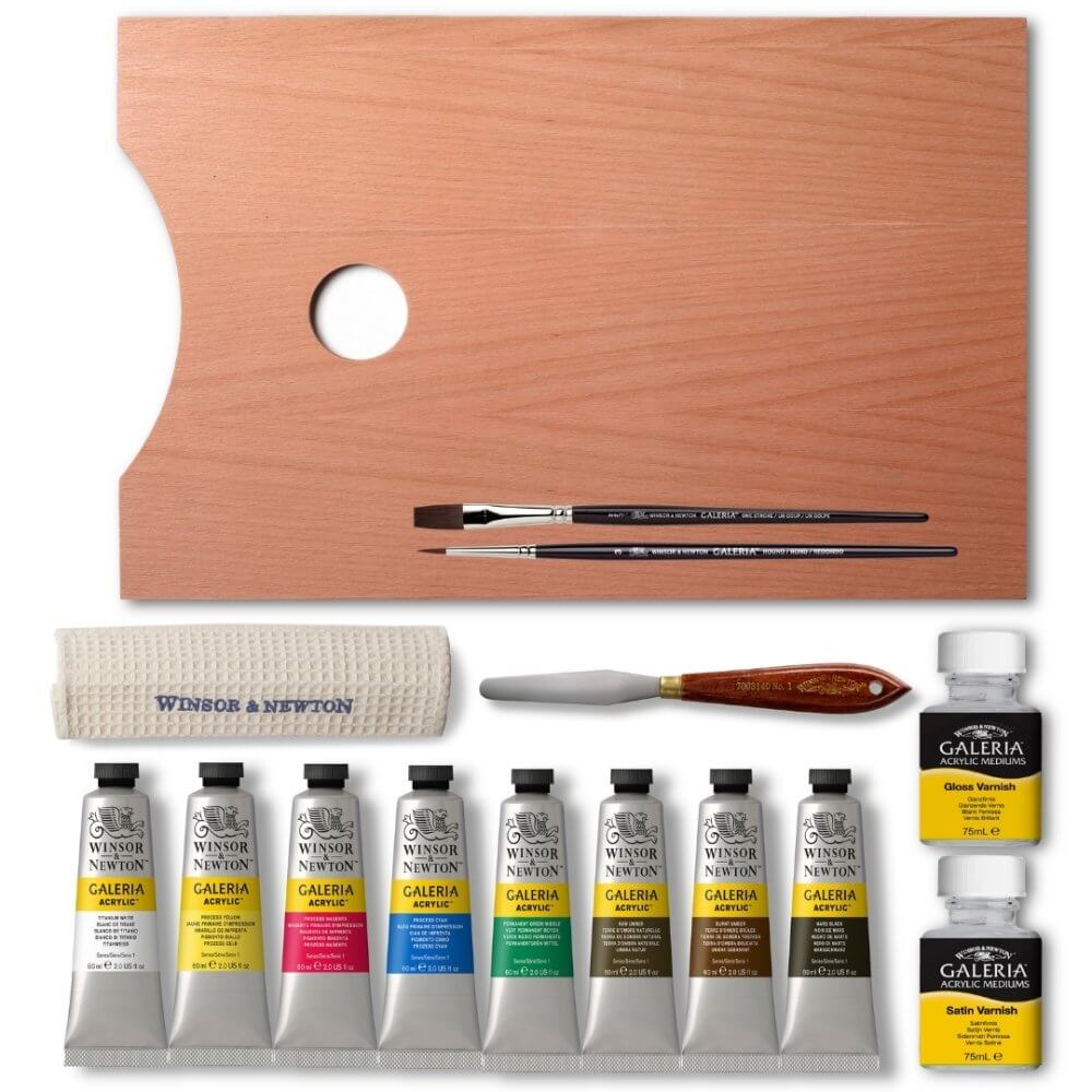 Our complete essentials gift set includes a resistant wooden box filled with high-quality Galeria acrylic paints, essential additives, premium brushes, and all the accessories you need to master the art of acrylic painting. Whether for yourself or a beloved artist, this set is the perfect gift to inspire creativity and artistic expression. Set Contents: |