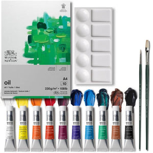 Winton Hog Oil Brush, Round LH- Size 2 Winton Hog Oil Brush, Bright LH - Size 6, Winsor & Newton Canvas Textured Oil Pad: Size A4 (8.27 x 11.69in) 10 Sheets, 230g/m2 108lbs, Acid-free, Plastic Palette 5 round wells & 5 slanted wells